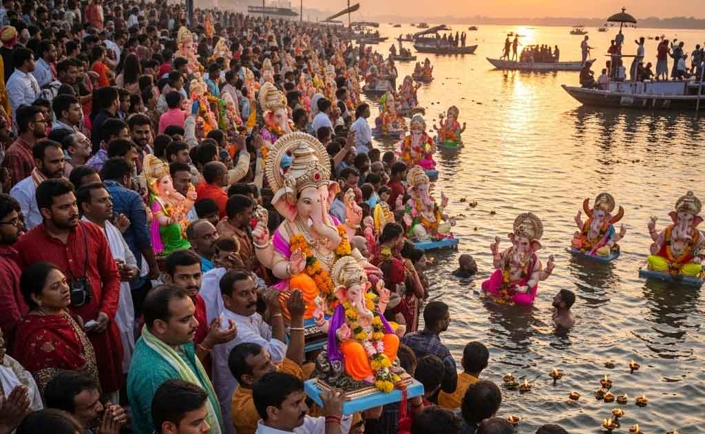 मुख्य शब्द: गणेश निमज्जनम्, गणेश विसर्जन, उत्तर भारत गणेश उत्सव, गणपति बप्पा मोरया, धार्मिक परंपरा, भारतीय त्योहार, आध्यात्मिक महत्व, सामुदायिक उत्सव